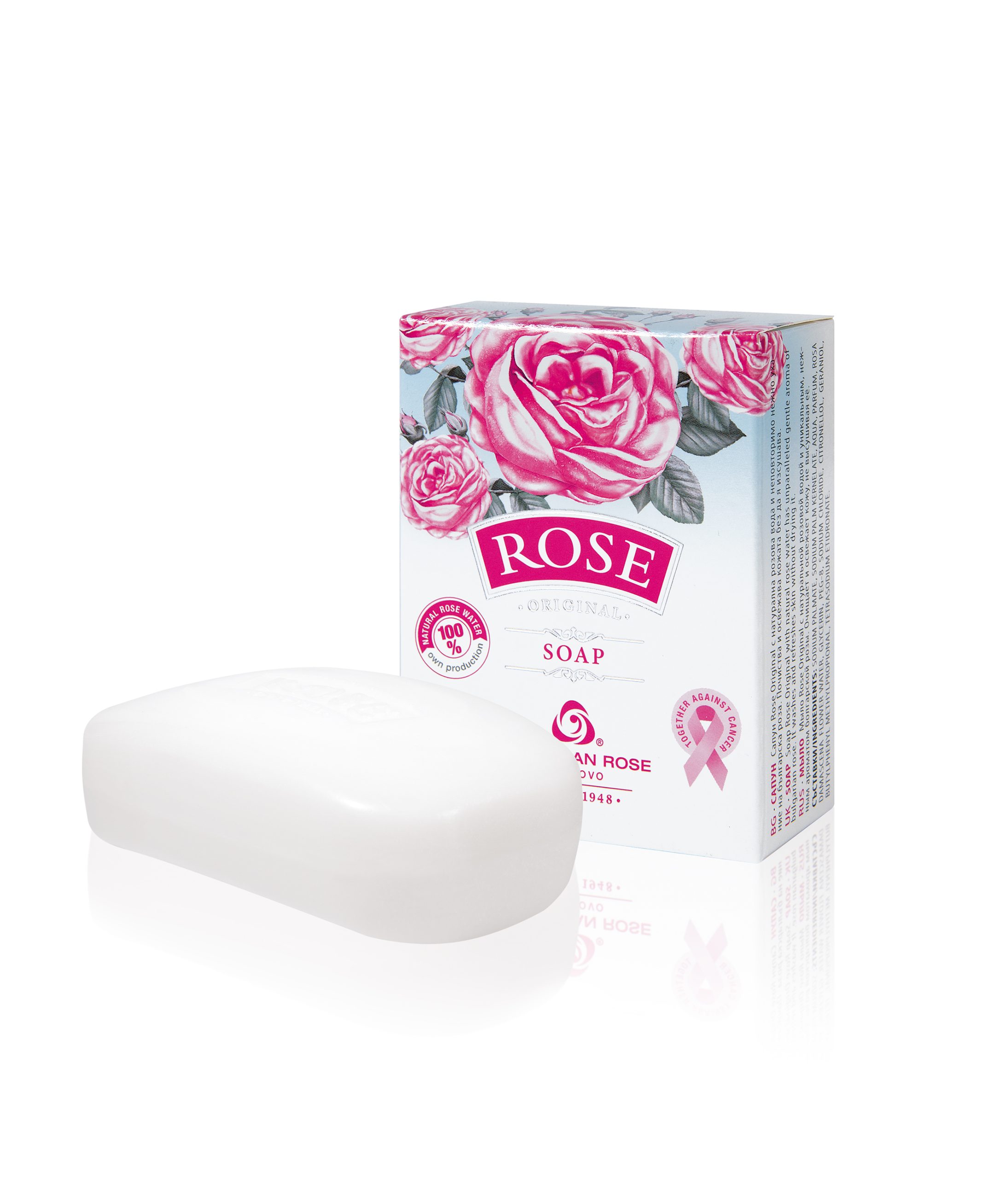 Mýdlo Růže originál s přírodní růžovou vodou jemně voní po bulharské damašské růži. Myje a osvěžuje pokožku, aniž by ji vysušovalo.